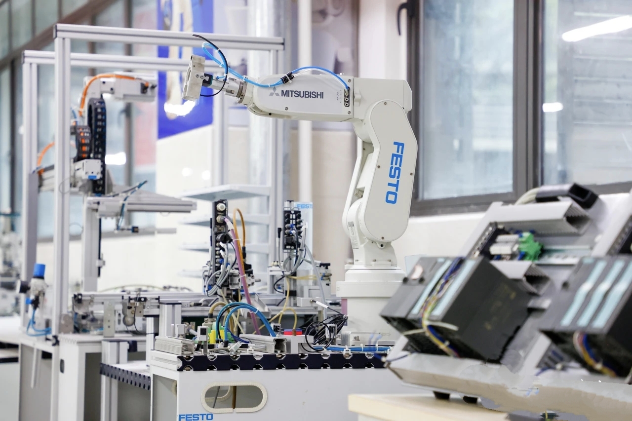 更多的项目纷至沓来,在这里加快成果转化。据了解,工贸中试平台以学校电气工程学院、机械工程学院两个学院为主,集结全校科研力量,以智能制造、工业互联网、工业机器人、人工智能等专业领域为核心建设,拥有中试设备2823台(套)、大型科学仪器设备总数193台(套),目前主要承接企业“智改数转”过程中的数字化产线改造、产品试制等项目,同时将其中的重点项目转化为教学项目,实现新材料、新工艺、新技术进教材、进课堂、进实践。