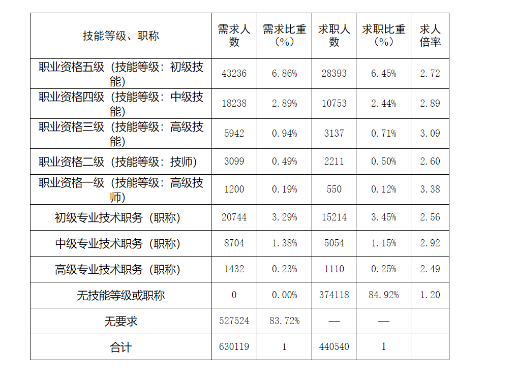 二季度全省人力资源市场技能等级、职称供需情况(来源:人力资源社会保障厅)