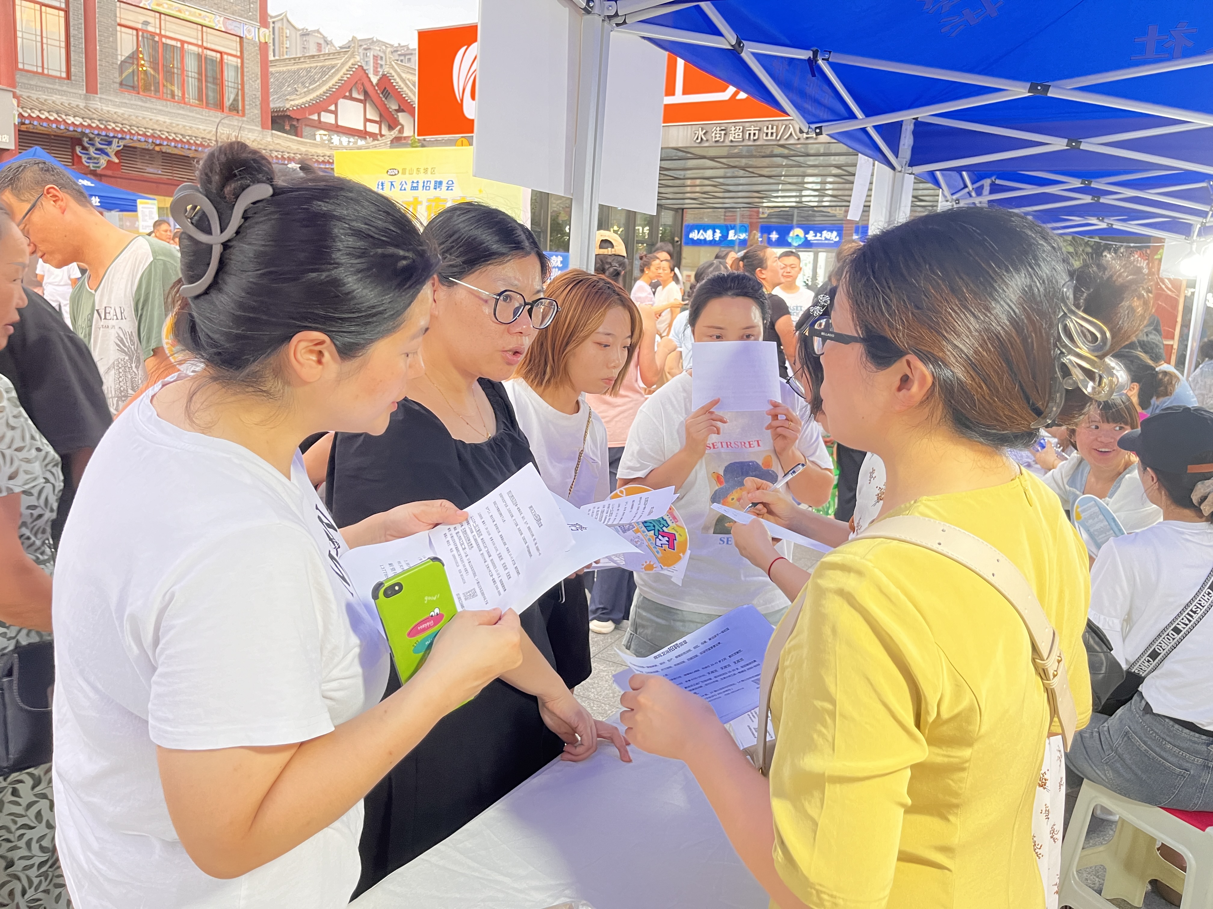 炎炎夏日,逛街之余顺便寻找工作机会,已成为当下一种新颖的求职体验。8月17日傍晚,在眉山市东坡区印象商业水街,一场别开生面的“人才夜市”公益招聘会火热开启。现场氛围热烈,灵活新颖的招聘方式吸引了无数市民围观和参与。