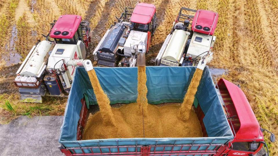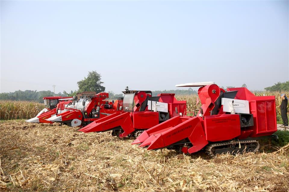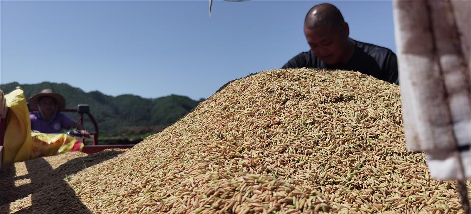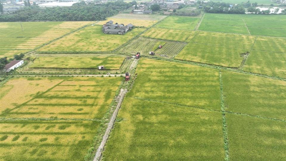 夹江县机械化助力水稻颗粒归仓 王楠 摄