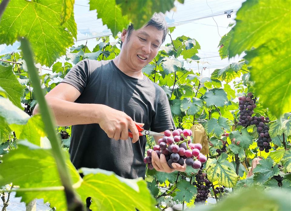 五通桥区西坝镇向荣村村民喜摘葡萄 记者 赵径 摄