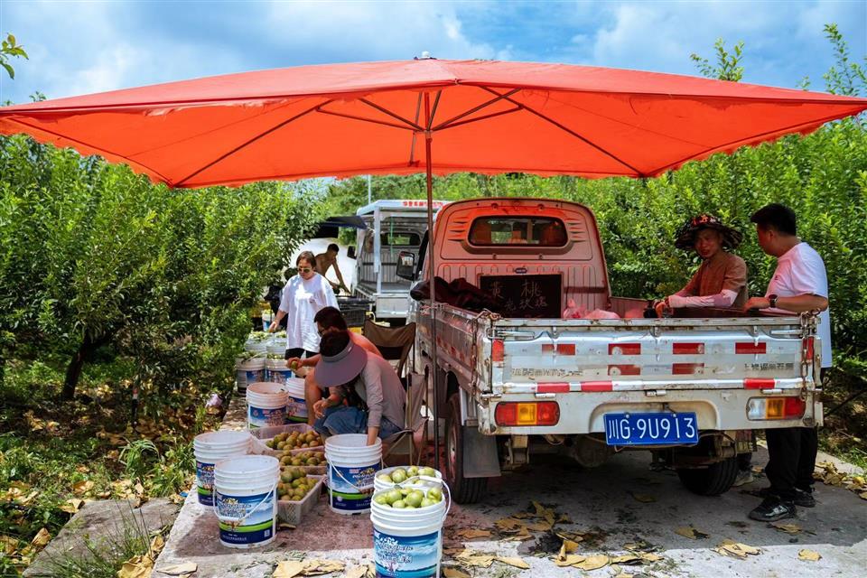峨眉双福脆红李迎来丰收,村民忙着打包运输 峨眉山市融媒体中心供图