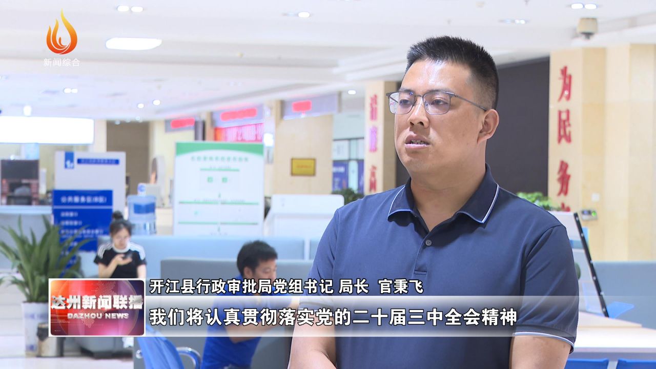 开江县行政审批局党组书记 局长 官秉飞:我们将认真贯彻落实党的二十届三中全会精神,夯实“田事甜办”政务服务体系,加强“天府通办”开江分站建设,推进“网上办”“掌上办”,推动国家13件高效办成“一件事”落地落实,深化政务服务+供销、邮政、通信、金融合作,为企业、群众提供更省心、舒心、贴心、暖心的政务服务“甜办”环境。