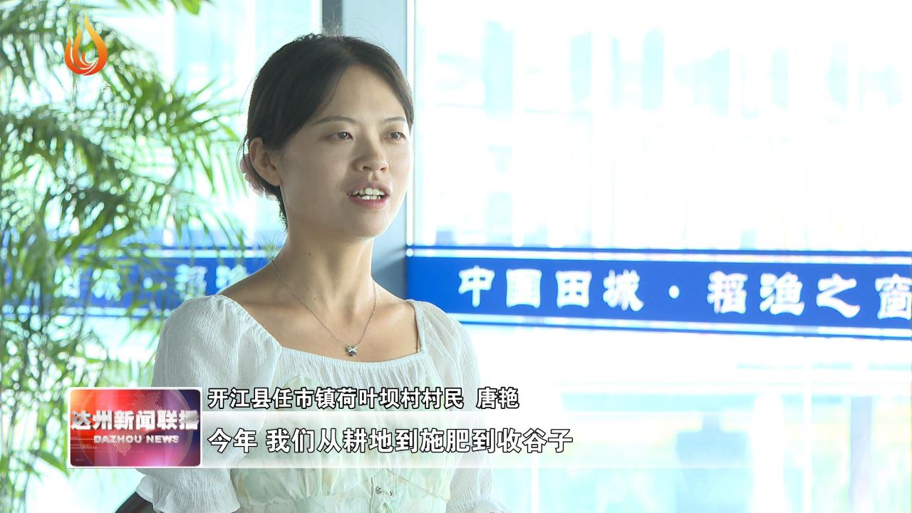 开江县任市镇荷叶坝村村民 唐艳:今年,我们从耕地到施肥到收谷子,管都没管过,手机上点一下,都把田种了,而且算下来一亩地比以前还便宜了70到100块钱左右,现在都不用担心两个老年人在家种田了。