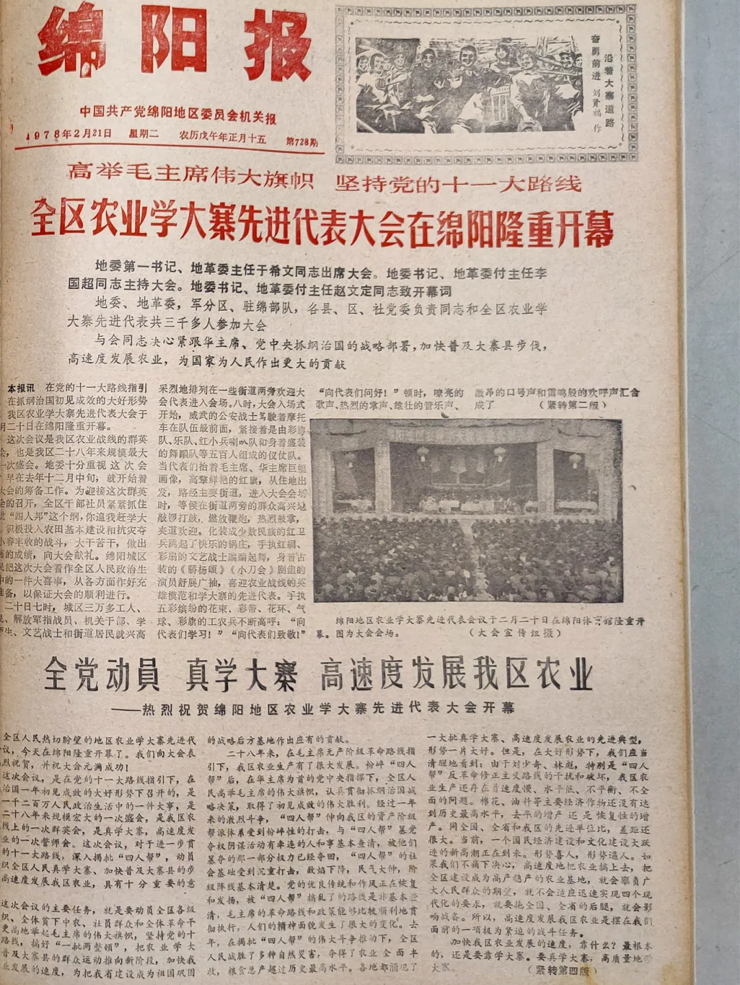 ✦1958年,绵阳地委机关报《前锋报》问世;