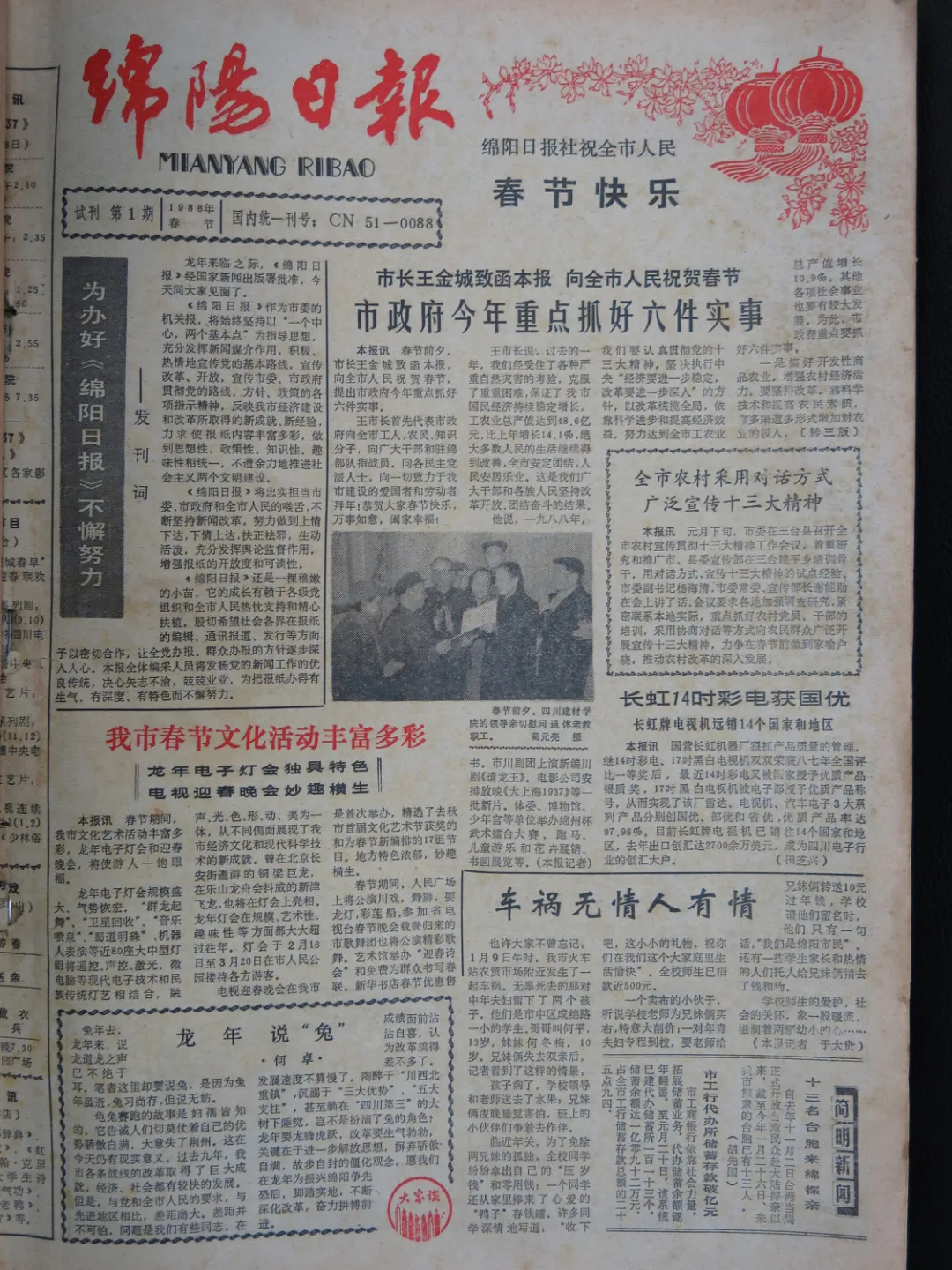 ✦再到1988年春节,散发着墨香的《绵阳日报》迎着朝晖送到了市民手中。