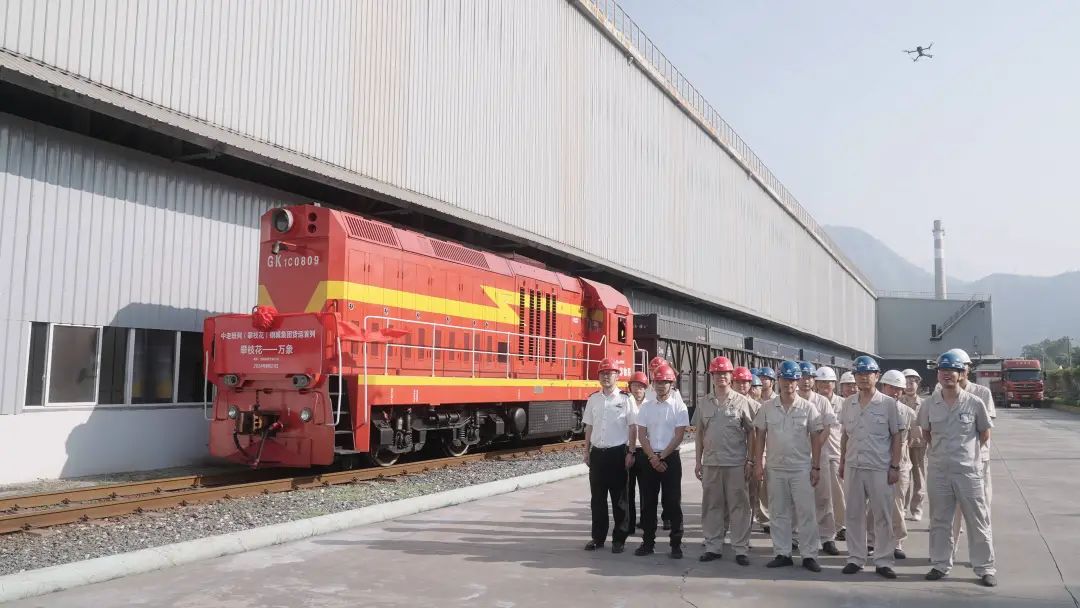 8月21日9:00,一声长长的汽笛鸣响,攀钢弄弄坪铁路专用线上,一列扎着红绸红花的中老班列装载着52个集装箱驶出,现场一片欢呼声……