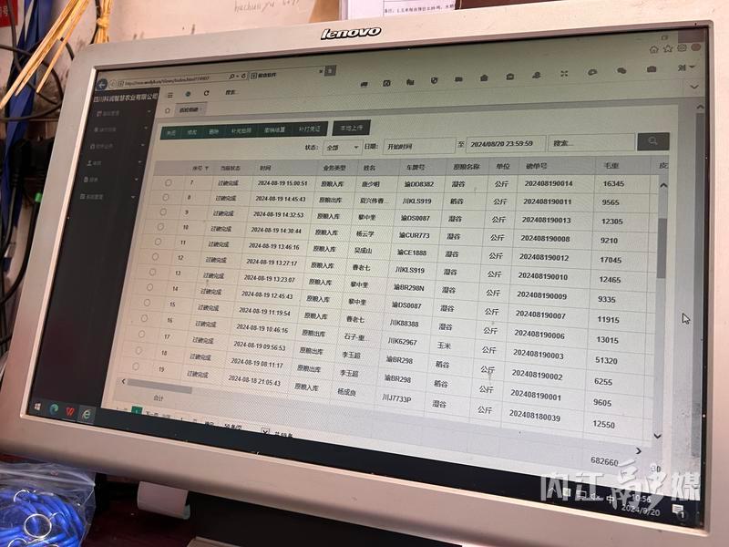 质检地磅系统里,显示着一车又一车来自川渝两地的送粮卡车