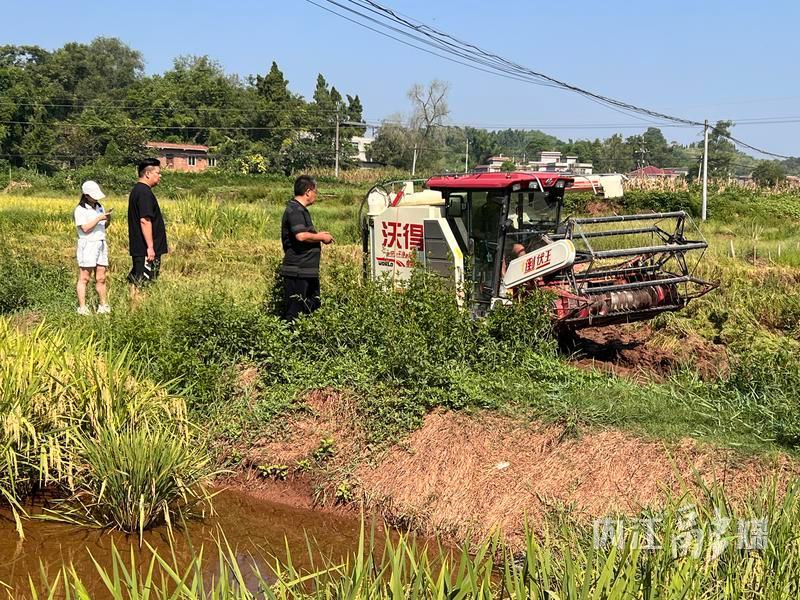 作为内江市宏丰农机专业合作社的负责人,胡洪兵在烘干厂里与前来销售稻谷的种粮大户确定好重量和价格后,又向田间走去,看看“稻客”收割情况如何……