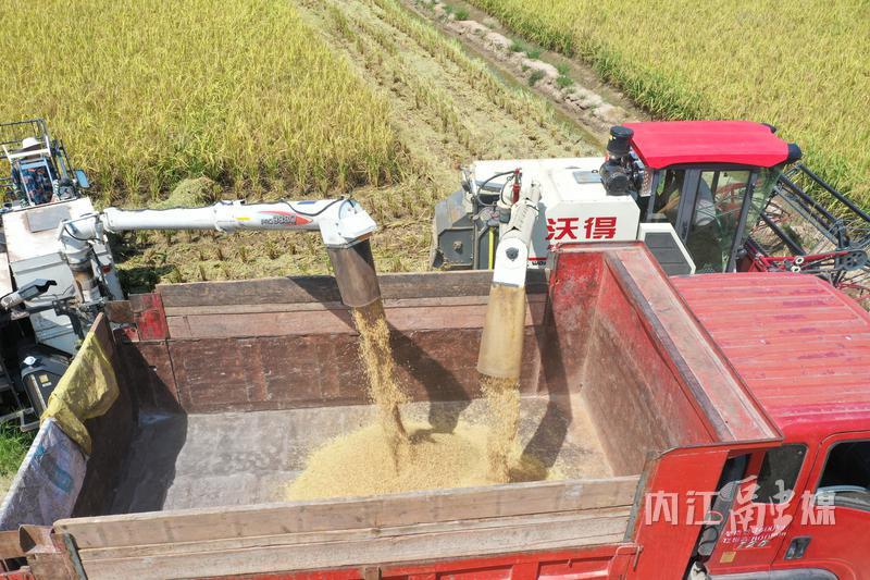 记者了解到,今年,内江水稻种植面积达121.1万亩,同比增长0.4%。目前,内江各地已陆续开镰收割,机械化作业为甜城大地的水稻收割按下快进键,预计产量将达67.15万吨,同比增长1.2%。