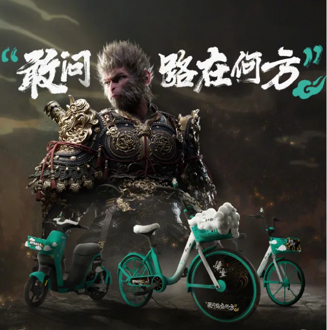 共享单车与《黑神话:悟空》游戏联名 图据滴滴青桔微博