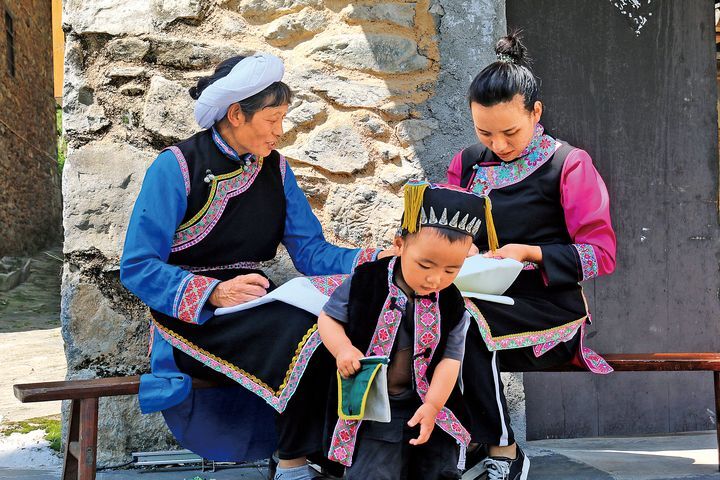 问起唐伟欣学习刺绣的过程,她的回答和母亲周学琼一样,“小时候大人绣就围着转,再一点点上手,慢慢就学会了。”或许刺绣早已融入当地人的生活,在母亲和孩子的生活中悄然就完成了传承。