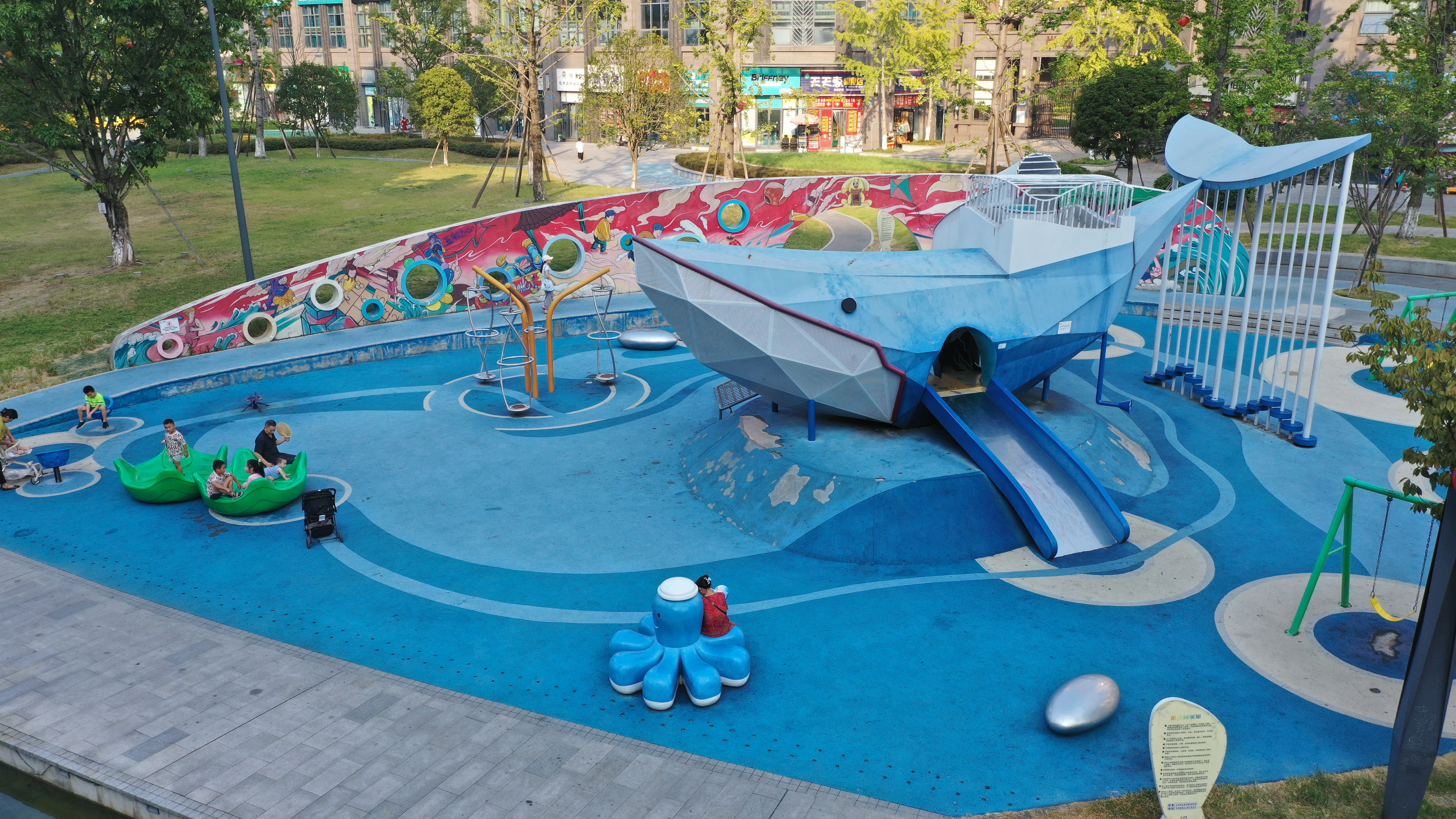 “口袋公园”不仅既有“颜值”也有“温度”。位于遂宁市河东新区五彩之心“口袋公园”的建成投用,为周边15个小区居民提供了带娃的好去处。该“口袋公园”西至五彩缤纷路、东至芳州路,全长1200米,以“城市儿童友好空间建设和改造”为核心,将游乐设施与社区生活有机融合,通过增设滑滑梯、跷跷板等儿童游乐设施,在扮靓城市颜值的同时,着力解决该区域儿童活动空间“小”“远”“少”的问题。