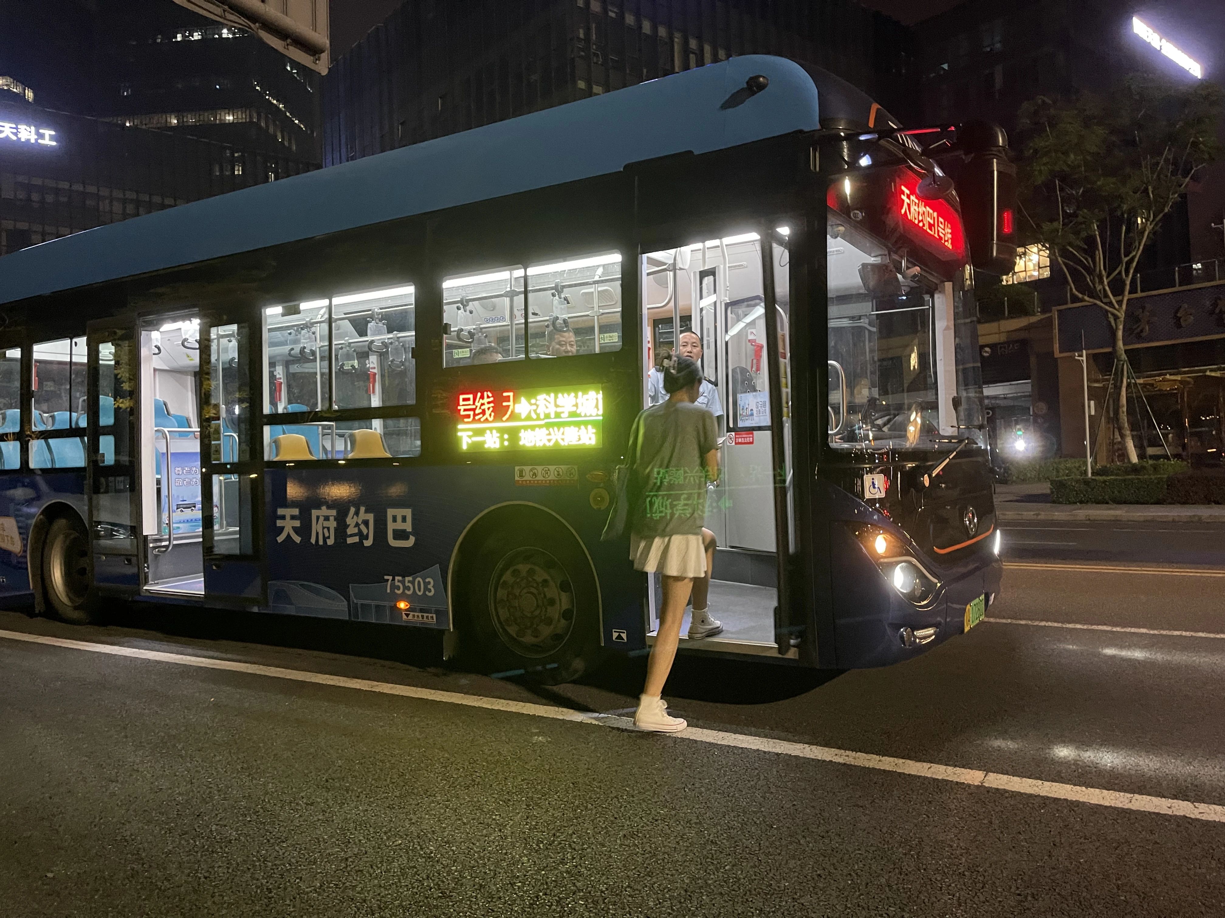 此外,为了解决居民夜间出行难问题,天府新区公园城市局联合天府公交特别推出“天府约巴”预约响应式公交。把零散化的需求向集约化转变,灵活解决兴隆湖周边居民及企业员工夜间出行需求,用智慧化的公交运营模式,为天府新区的乘客们带来更加便捷的出行体验,照亮了回家的路。