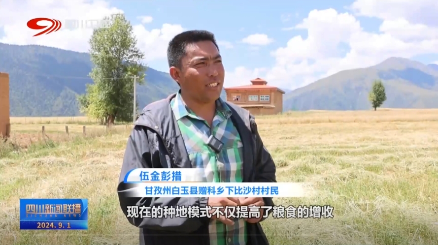 甘孜州白玉县赠科乡下比沙村村民 伍金彭措:现在的种地模式,不仅提高了粮食的增收,还有效解决了人力问题,机器也收割成为了常态,这样家庭中的其他成员能够外出务工,增加了我们的收入来源。