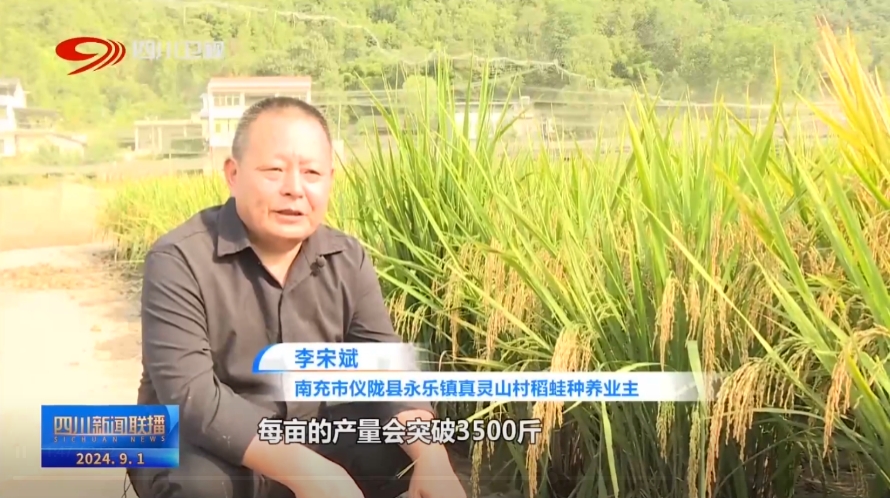 南充市仪陇县永乐镇真灵山村稻蛙种养业主 李宋斌:每亩的产量突破千斤左右;喂养的黑斑蛙又大又漂亮,目前市场价每斤20元,每亩的产量会突破3500斤,每亩的产值7万多元。