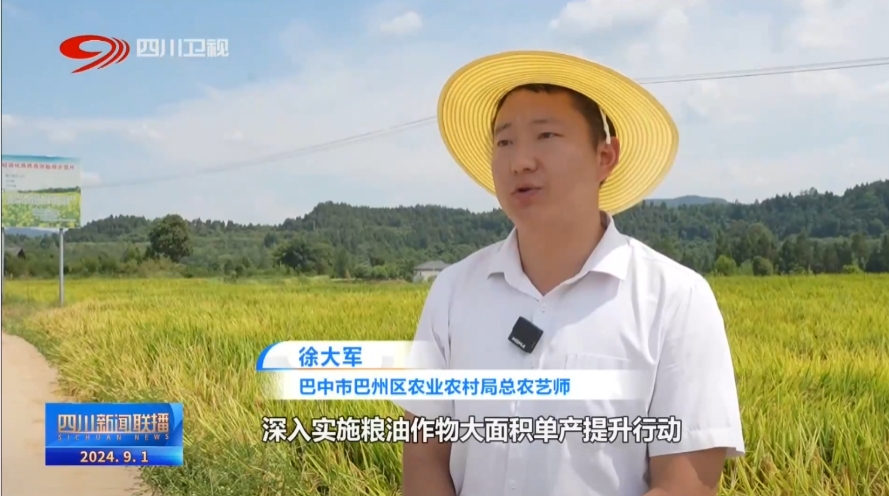 巴中市巴州区农业农村局总农艺师 徐大军:深入实施粮油作物大面积单产提升行动,主要粮食作物高产示范片平均增产20%以上,为实现全年粮食生产任务打下坚实基础。
