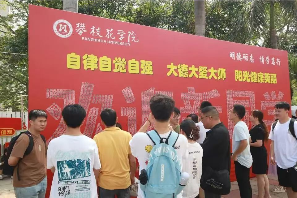 “攀”登向上,从今朝做一个“大”人。“大”道求真,为明日“攀”一座高峰。在攀枝花学院迎新大道上,一条条横幅格外醒目。校门入口摆放着一个由新生的名字组成的巨型展板——“欢迎新同学”,家长、学生纷纷从中找寻熟悉的名字,感受“新潮”的欢迎仪式。