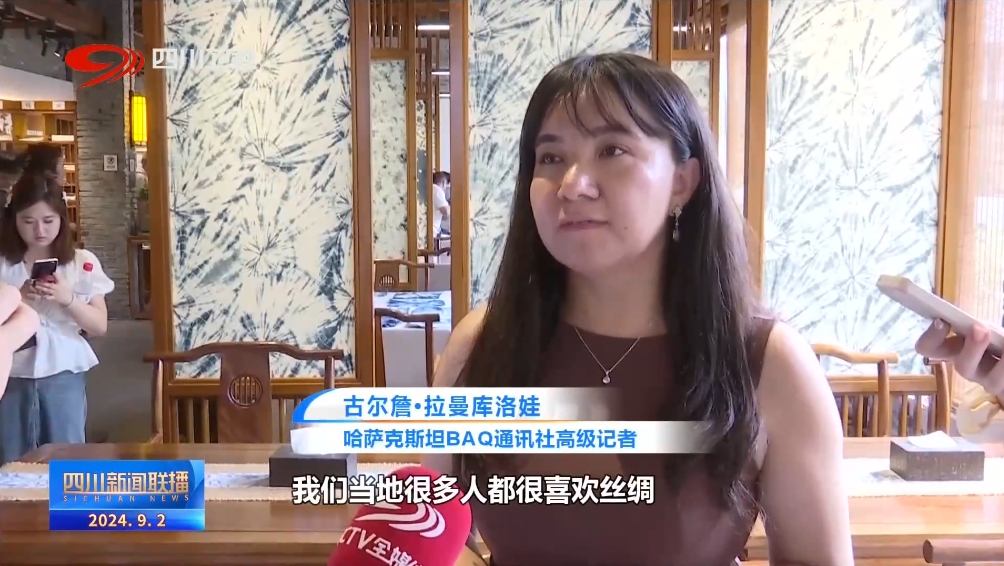 哈萨克斯坦BAQ通讯社高级记者 古尔詹•拉曼库洛娃:在我们哈萨克斯坦,我们当地很多人都很喜欢丝绸。我刚刚也穿了丝绸的连衣裙,我非常喜欢,尤其是它的材质特别好,感觉特别轻,也特别柔软。
