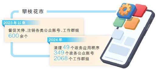 今年以来,攀枝花市大力开展“指尖上的形式主义”专项整治。“希望刹住以数字化手段变相加重基层负担的不良风气,让广大干部把更多时间和精力花到推动发展和服务群众上。”攀枝花市委网信办四级调研员刘之丁说。