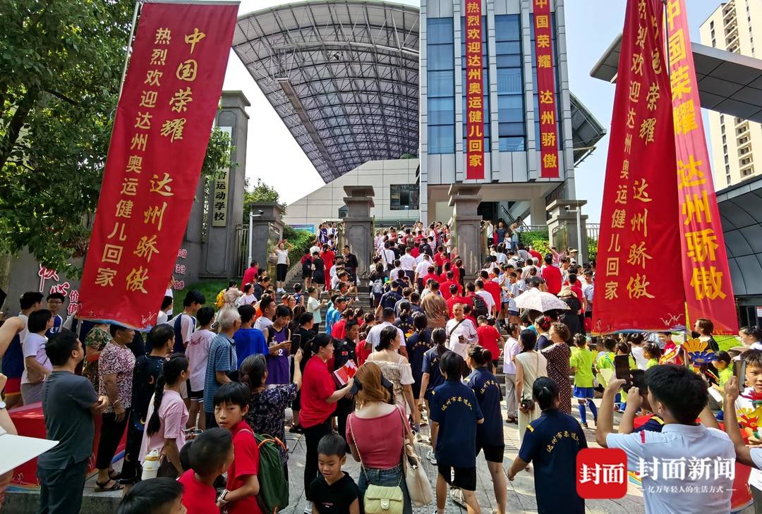 家乡人簇拥着“五朵金花”走进达州市体育运动学校。曾业 摄
