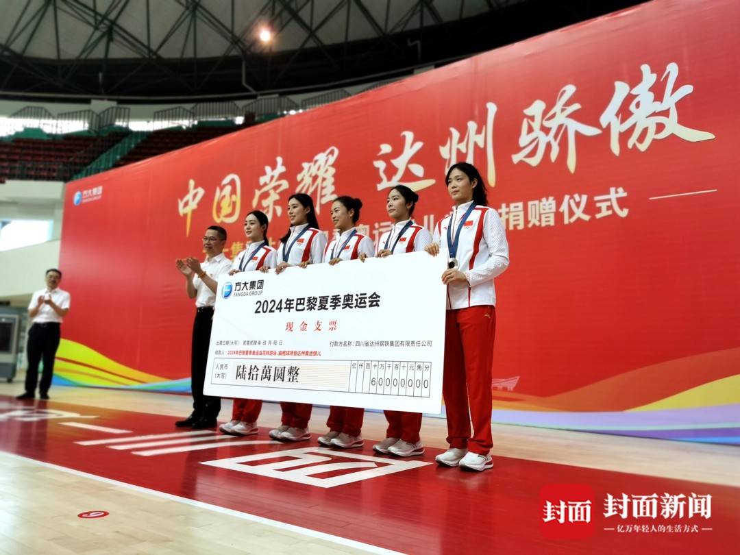 简洁而隆重的欢迎仪式,在家乡人经久不息的掌声中拉开帷幕。方大集团为五位奥运健儿捐赠60万元奖金。紧接着,她们走进达州市体育中心、达州市体育运动学校,看望、指导正在训练的学弟学妹,为他们回顾自己当年在这里奋斗过的日子,讲述拼搏历程,鼓励他们认真学习、刻苦训练,努力追逐梦想。