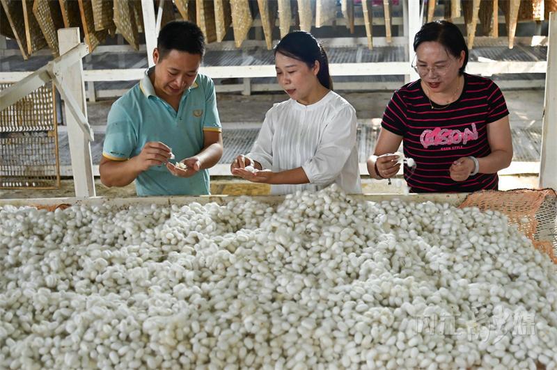 据了解,内江市东兴区有着悠久的桑蚕养殖传统,是“全国优质蚕茧基地县”。依托当地资源优势和环境特点,东兴区把发展蚕桑产业与推动乡村振兴相结合,通过“龙头企业+合作社+基地+农户”的模式,大力发展蚕桑产业,带动群众栽桑养蚕增收致富。