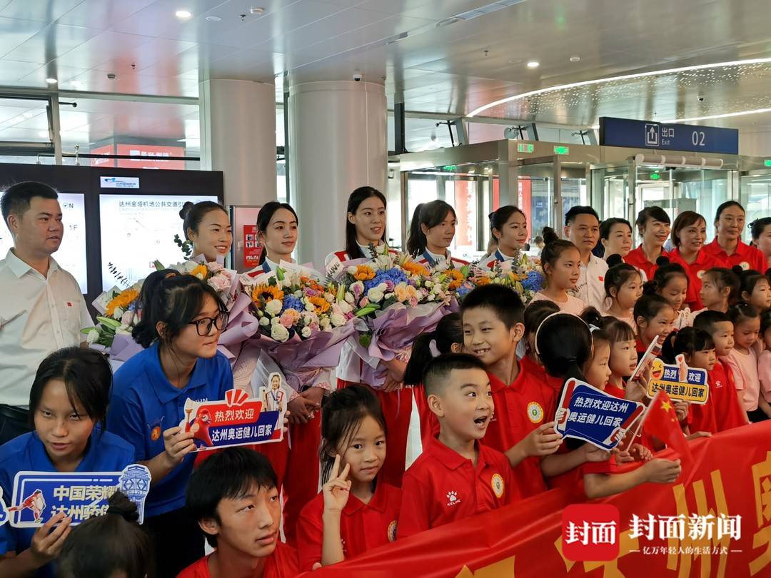 四川达州籍五朵奥运金花荣归故里 一下飞机就被泪水和鲜花包围