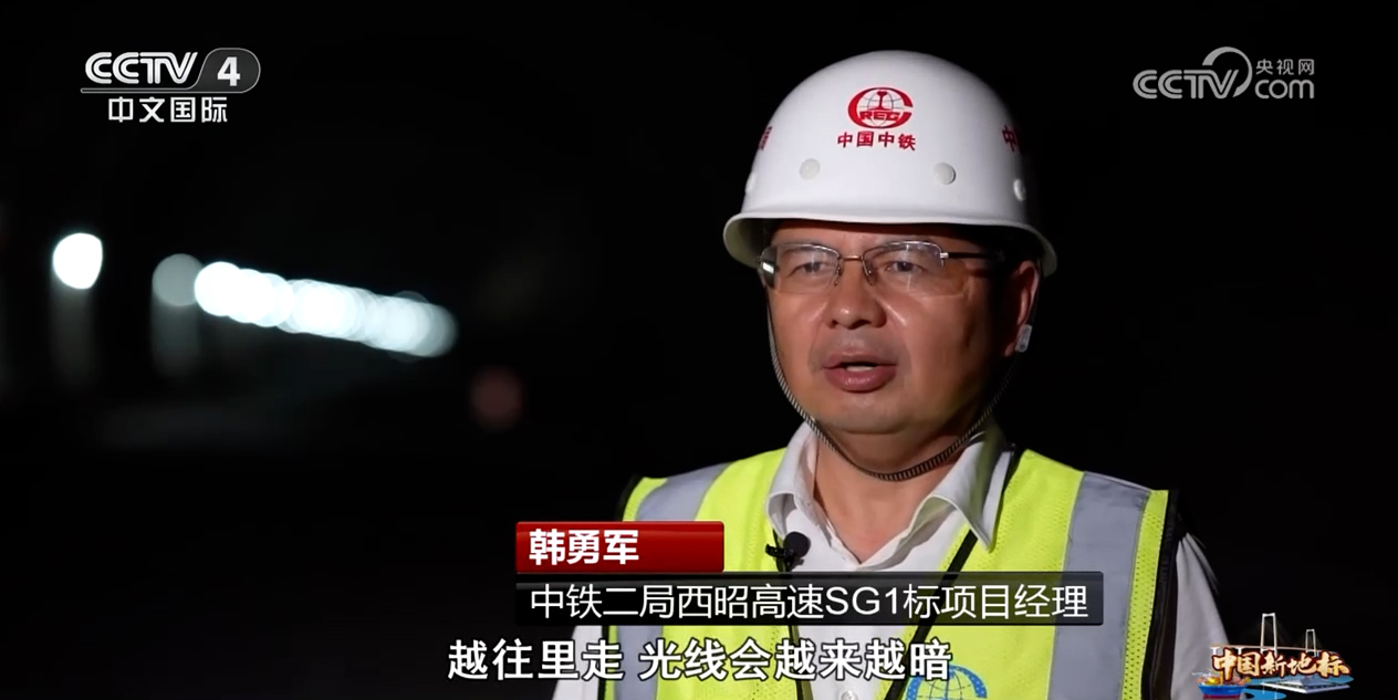 中铁二局西昭高速SG1标项目经理 韩勇军:人进入螺旋隧道之后,越往里走,光线会越来越暗,开着车行驶在螺旋隧道内,能直观地发现,隧道里的灯带会一直在转弯。