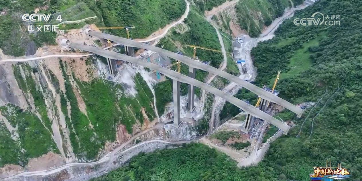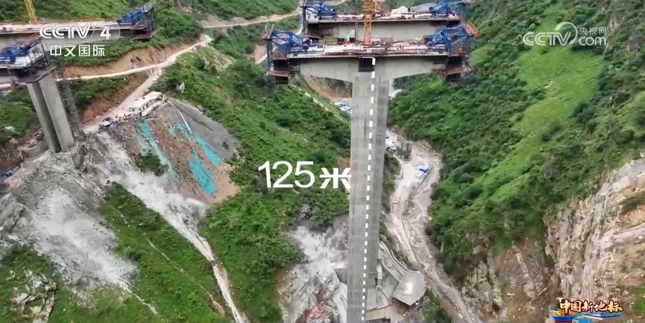 总台央视记者 骆魏:在这一区域修高速,基本上都是桥连隧、隧接桥。我所站的位置,就是连接老营盘二号和三号隧道的观音岩大桥二号桥墩,这个桥墩直立于两山之间的峡谷中央,高125米,是西昭高速全线最高的一座桥墩。
