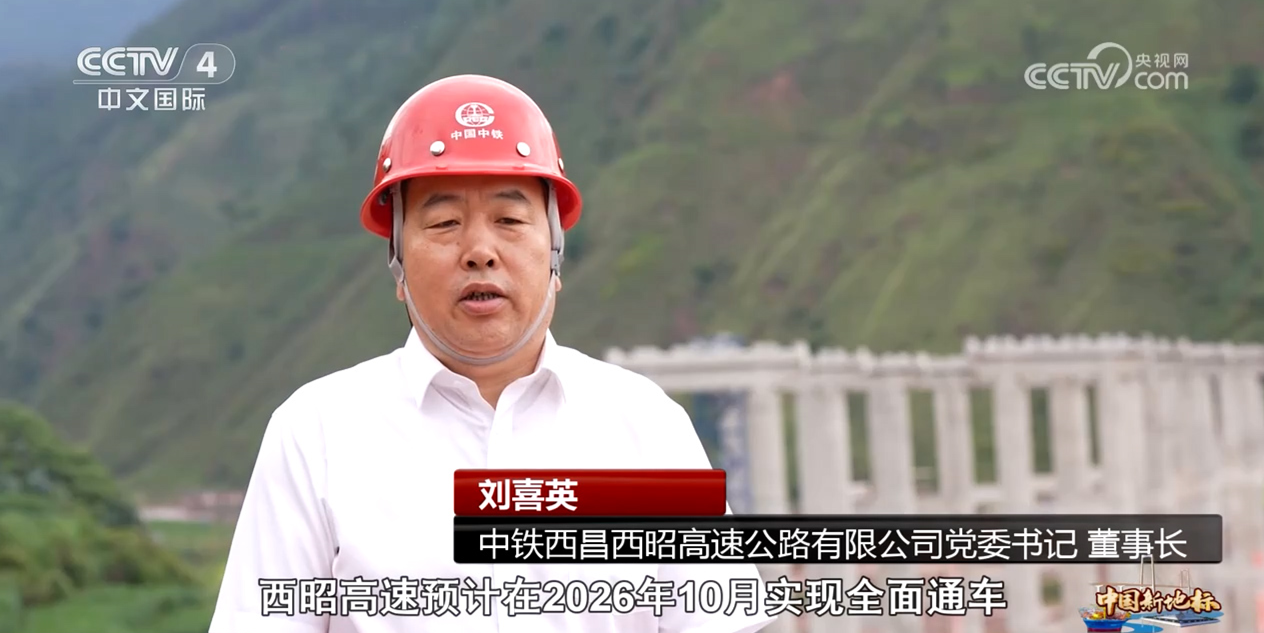 中铁西昌西昭高速公路有限公司党委书记、董事长 刘喜英:西昭高速预计在2026年10月实现全面通车。当前从西昌开车到昭通需要8个多小时,西昭高速全线通车后,预计只需要3个小时。