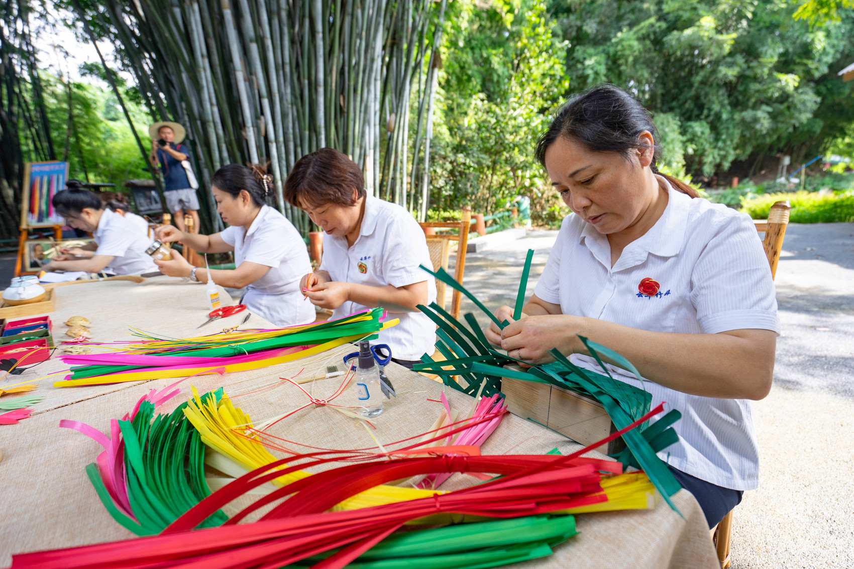 “今年,我们又上新了饰品竹编,大家刚才编的那条热带鱼就是我们的新产品。”陈云华介绍,目前,中国竹艺城集竹编产业产学研、乐购游等业态,为适应市场需求,他带领员工开发了胸花、耳饰等新产品,并附带研学课程,大大提升了竹产品的附加效益。目前,中国竹艺城研发的各类竹产品将近1000多种,极大适应了市场需求。