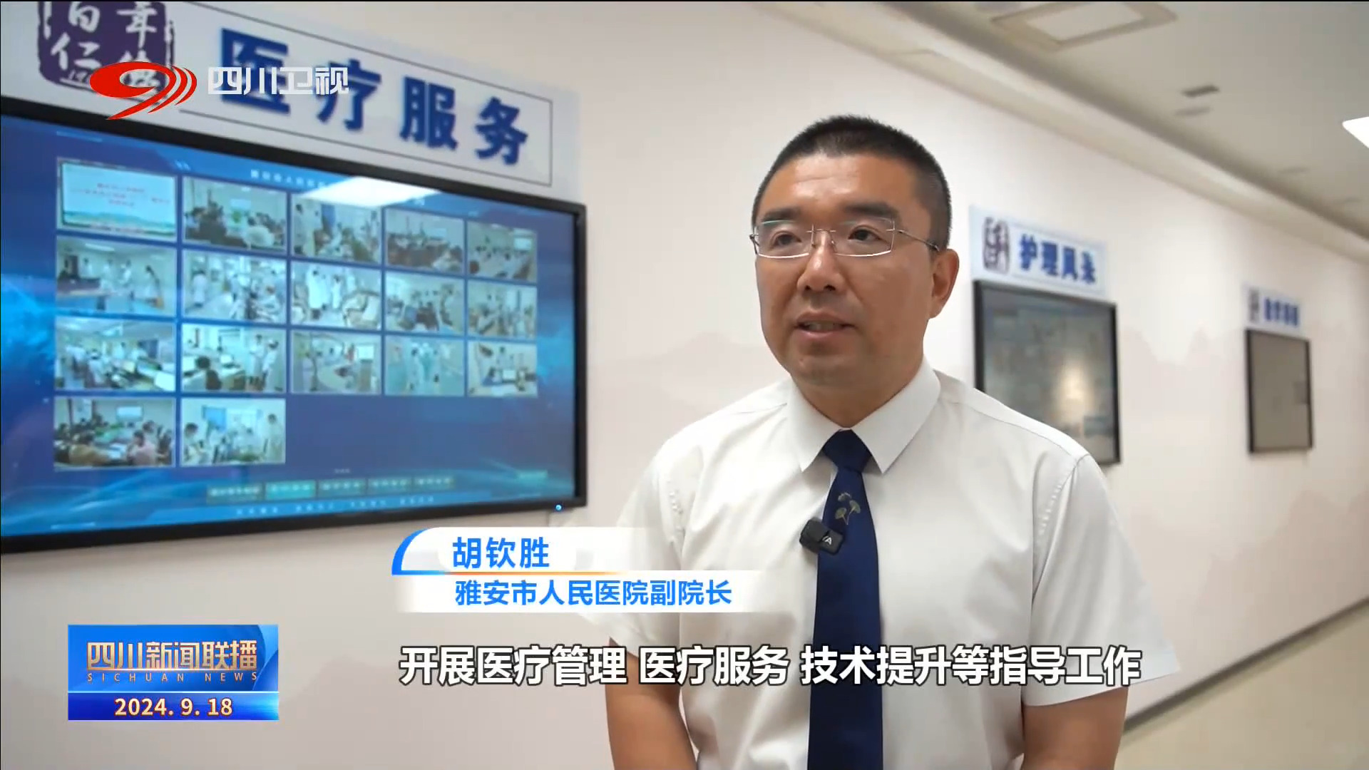 雅安市人民医院副院长 胡钦胜:我们派驻了院长和学科主任,开展医疗管理、医疗服务、技术提升等指导工作,提升县级医院的诊疗水平和医疗服务能力,达到分级诊疗、大病不出县的目标。