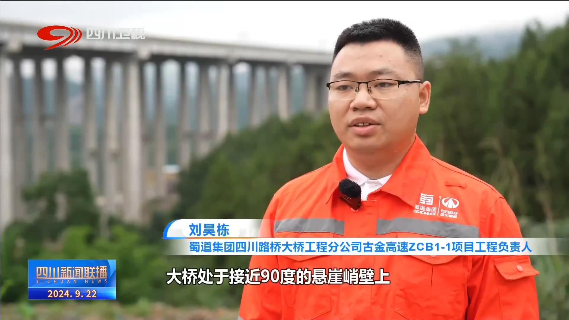 蜀道集团四川路桥大桥工程分公司古金高速ZCB1-1项目工程负责人 刘昊栋:大桥处于接近90度的悬崖峭壁上,当时进场的机械设备材料都十分困难,为了解决进场便道的困难,决定采取沿着山壁采用螺旋式降坡开挖便道,(可以说)这座大桥的落成标志着古金高速全线通车目标的实现。