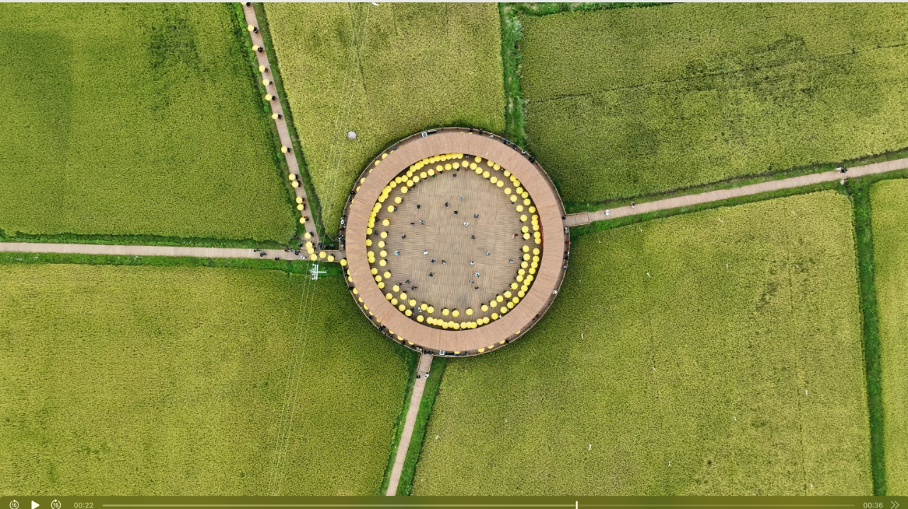世间绝有的景色,再融合丰收的景象,属于这片山水的魅力变得愈发独特。