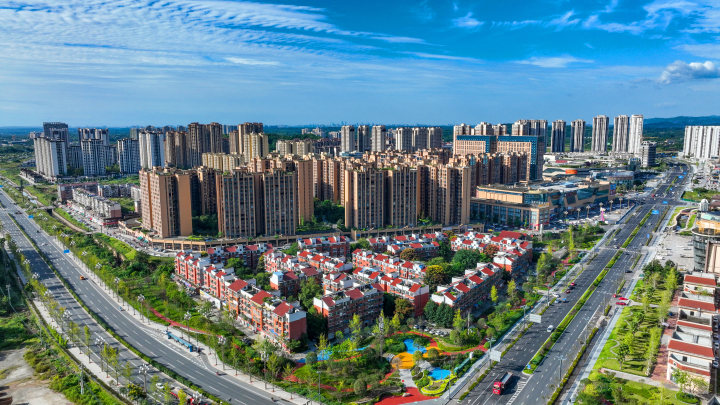 从成都市中心出发,沿着宽阔的天府大道,直达眉山天府新区。