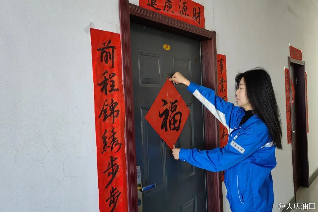 装备制造集团力神泵业有限公司的陈雪特别幸运,在公司活动中得到了油田艺术家们的墨宝——一副寓意美好的对联。她把对联张贴在了办公室门口,把这份幸运与大家分享,新的一年,大家一起撸起袖子加油干!