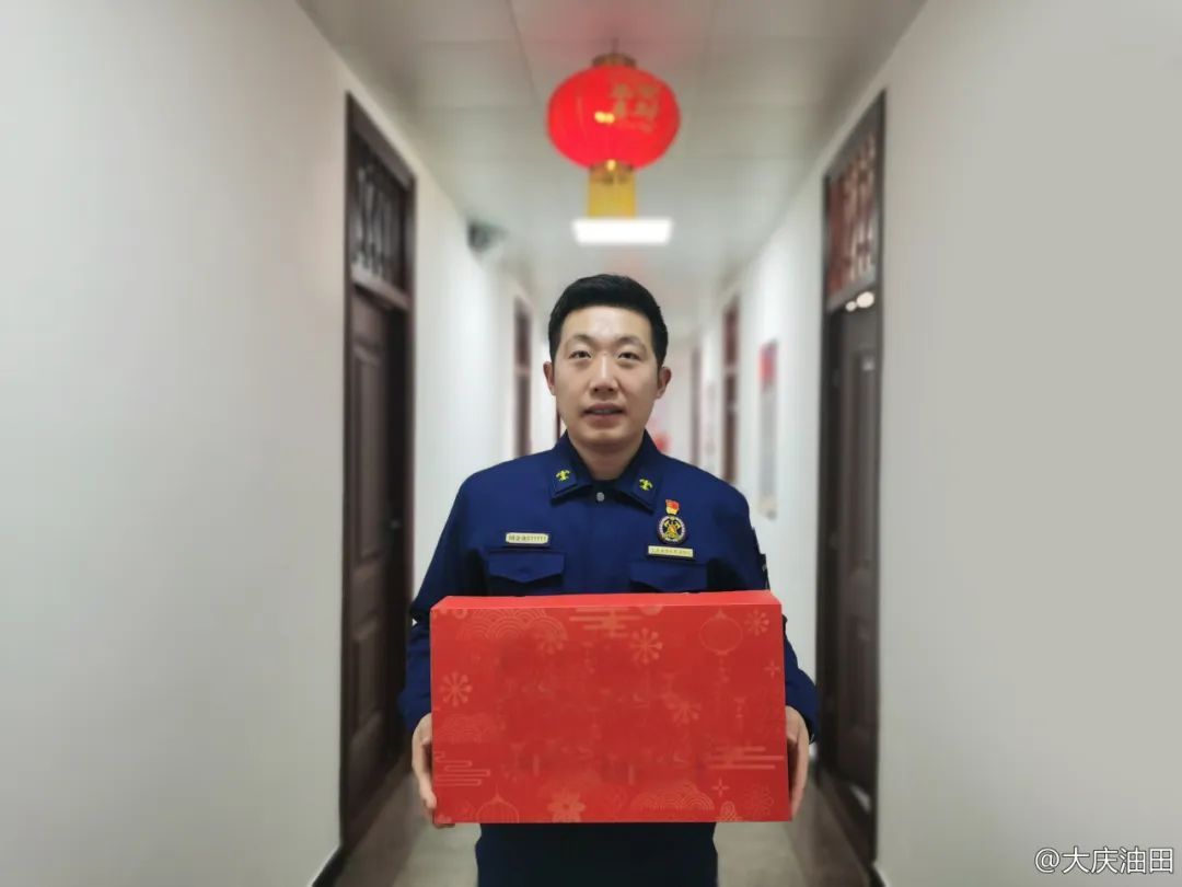 大庆油田消防支队银浪消防大队的林春雷手捧着支队工会精心准备的年货,别提多美了。他表示,年货多多,收获满满,愿新的一年能量满满。