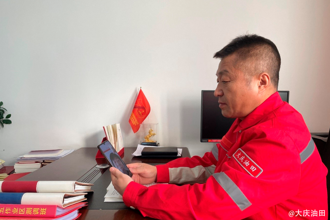 这是采油四厂第五作业区测调班的刘天良在岗位上度过的第10个春节。作为老党员,他把责任刻在心里,把使命扛在肩上。暂时忙完了手头的工作,他抽空给母亲视频拜年,期许以后能多陪陪母亲,补上这份团圆。