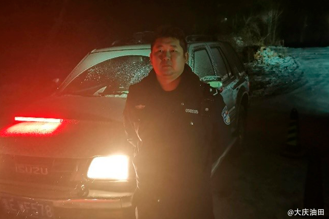 除夕之夜,千家万户灯火通明、喜庆祥和。而在民吉村的卡口,寒风依然刺骨,采油五厂保卫大队保卫员不畏严寒,身姿挺拔,眼神坚定,对过往车辆进行逐一排查。在这个万家团圆的日子,他们用忠诚与担当为油田平安保驾护航。