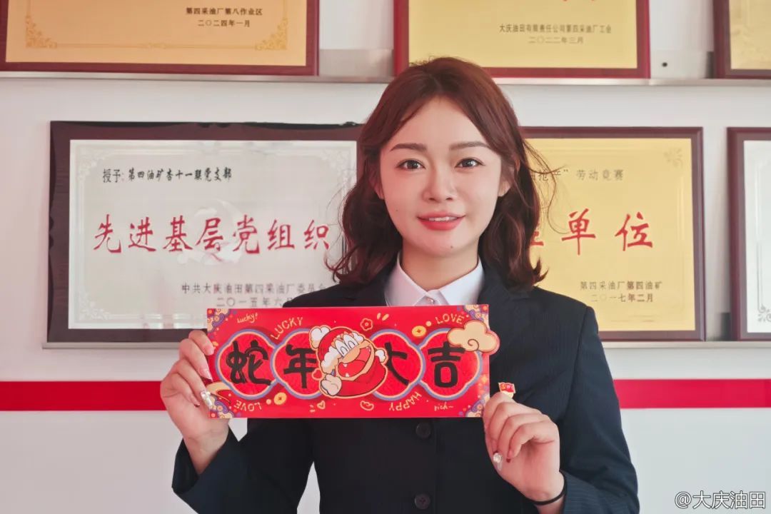 今年是蛇年,采油九厂数字媒体室的陈益穿上自己最爱的红工服,携自家的爱宠——“白娘子”一道送祝福啦!愿大家颜值赶超白素贞,蛇年钱包鼓鼓哒!作为一名油田宣传人,乙巳蛇年,她要多去一线多沾泥土,传递更多油田好声音。