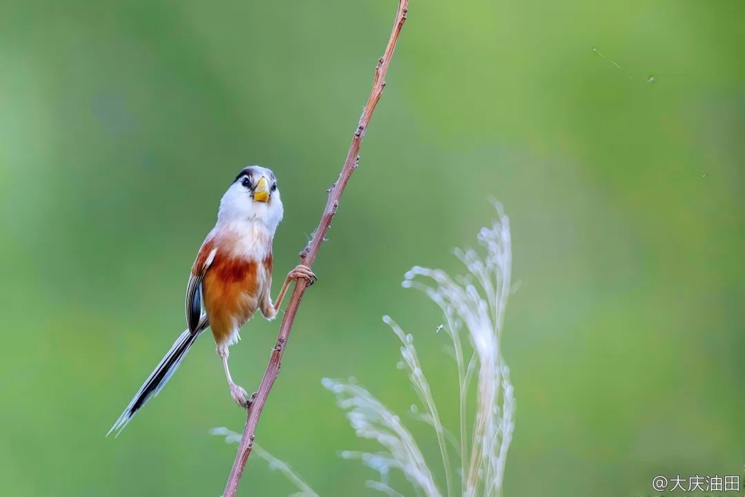 这是我在兰德湖边拍摄到的震旦鸦雀,站在槐条上张望的神情,呆萌可爱,让我更加热爱大自然。我要在今后的工作、生活中,更加重视环保,让脚下的这片土地生生不息。