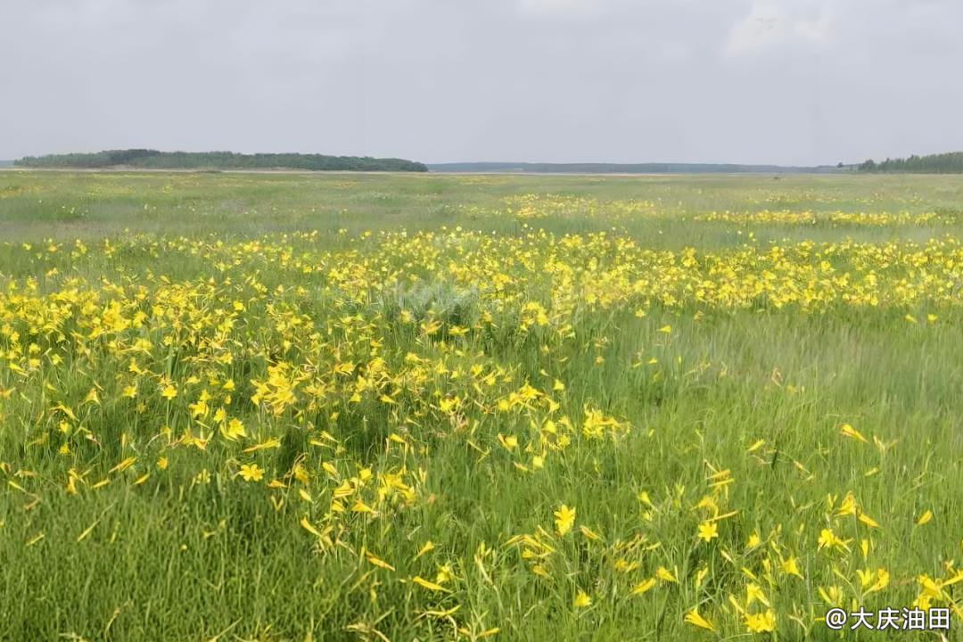 每年6月,大片淡黄色的黄花菜盛开在采油九厂附近。采油九厂在油田开发时尽量避开黄花菜的生长区域,减少对其生长环境的破坏,实现油田开发与自然环境和谐共生。