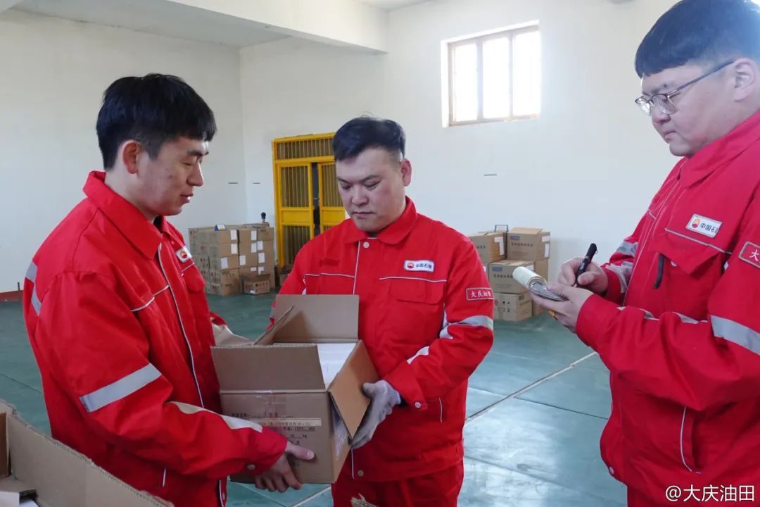 为保障全国最大的民用爆破器材装配基地安全运行,试油试采分公司射孔大队射孔四队爆破器材保管组保管员郭庆祥(右一)每天早上6点半准时到岗,将前一日射孔施工班组交还的火工品入库盘点,再发放当日所需的爆破器材,日均发放射孔弹3273发、增效火药570个、导爆索661米、传爆管116件。