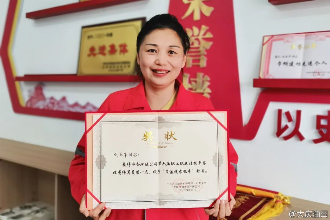 水务环保公司南区销售公司红岗营业所收费员刘庆华经过不断练习和摸索,在水务环保公司第六届职工技能大赛中获得收费结算员第一名,并被授予“岗位技术能手”称号。拿到奖状时,她欣慰地笑着说:“这份荣誉让我更加坚信,只有耕耘才能收获。我将以更加坚定的信念投入到未来的工作和学习中,不断追求卓越。”