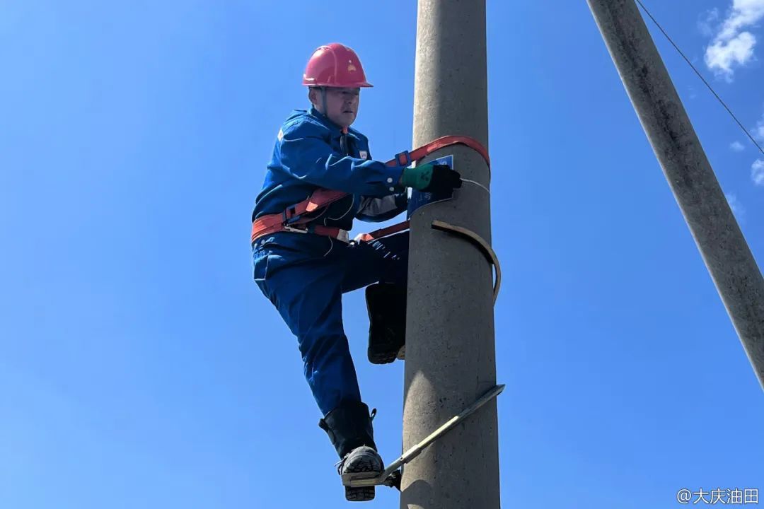 热浪裹挟着35℃高温扑面而来,电杆被晒得发烫,电力运维分公司电力运维七部配电线路工张丛想化身“空中舞者”,在电杆间娴熟穿梭。汗水浸透了工服,他用布满厚茧的双手将线路杆牌逐一精准固定。就这样,顶着烈日,他完成了42基电杆的线路挂牌工作,用实际行动为电网稳定运行保驾护航。