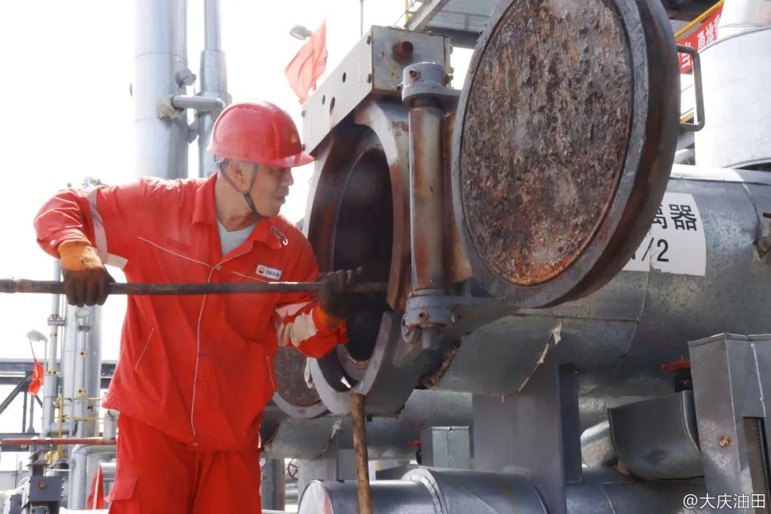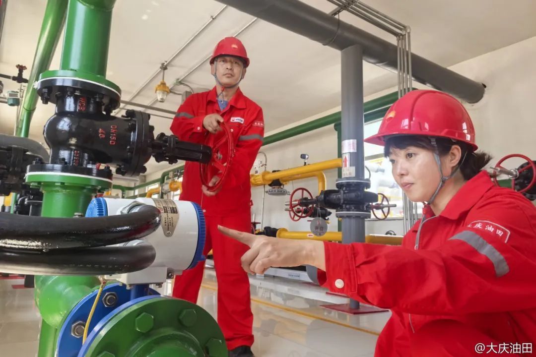 热洗、掺水、回油……阀组间温度直逼40℃。采油六厂第四作业区集输工赵睿(右)和同事已在这里“汗蒸”了1个多小时,只为调控出最平稳的运行参数。他说:“通过精准操控来助力油田高质量发展,即便天气再热,我们也要干!”