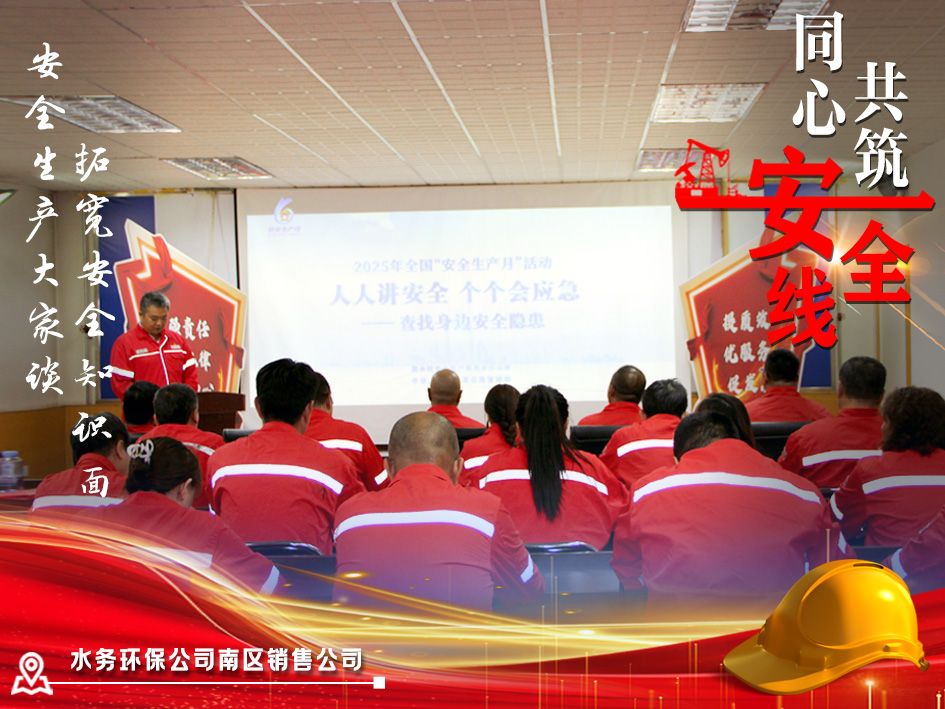 水务环保公司南区销售公司采取“全面覆盖、点面结合”的宣教方式,全方位、多角度、立体化解读宣传国家环保方针政策。利用“警示教育会”“中心组学习”等宣传载体,学习贯彻关于安全生产重要论述和重要指示批示精神。每日班前会开展“安全生产大家谈”活动,每名岗位员工做一次安全经验分享,拓宽安全环保知识面。