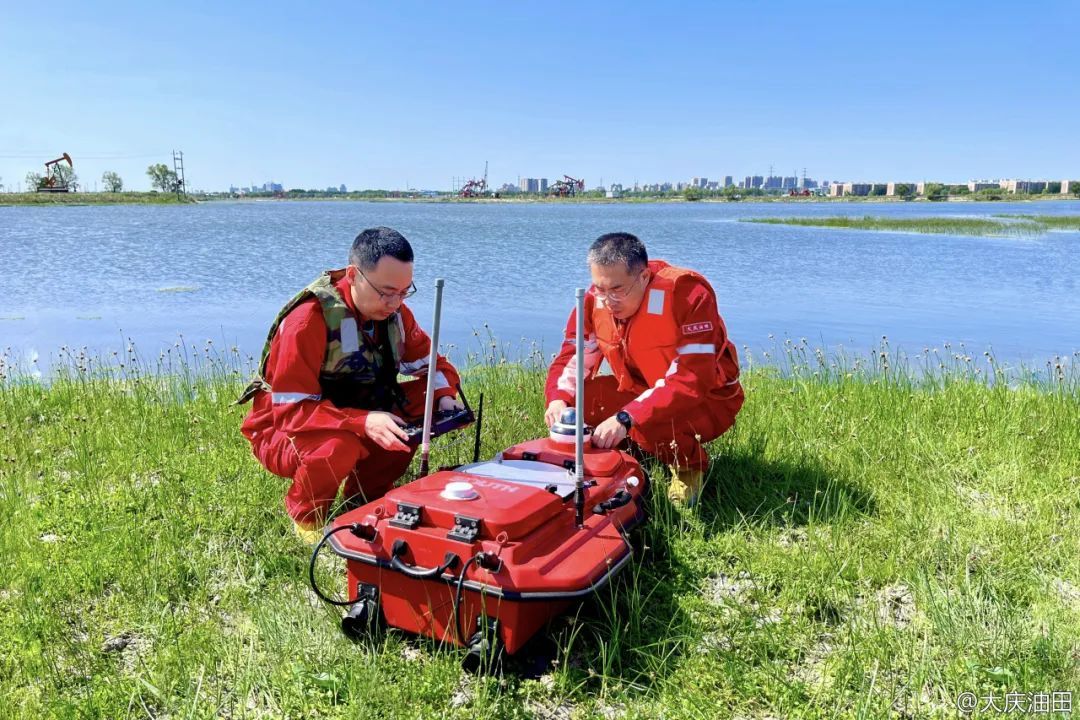 为全力护航油田绿色低碳可持续发展,水务环保公司水文地质公司探测工程部的测绘工程师们在月亮泡等9个泡泽进行水下测量作业,通过无人船和北斗卫星定位测量设备采集水下地形数据,精准计算湖泡库容,为油田水环境治理、汛期平稳度汛及新能源项目建设提供可靠的数据支撑。