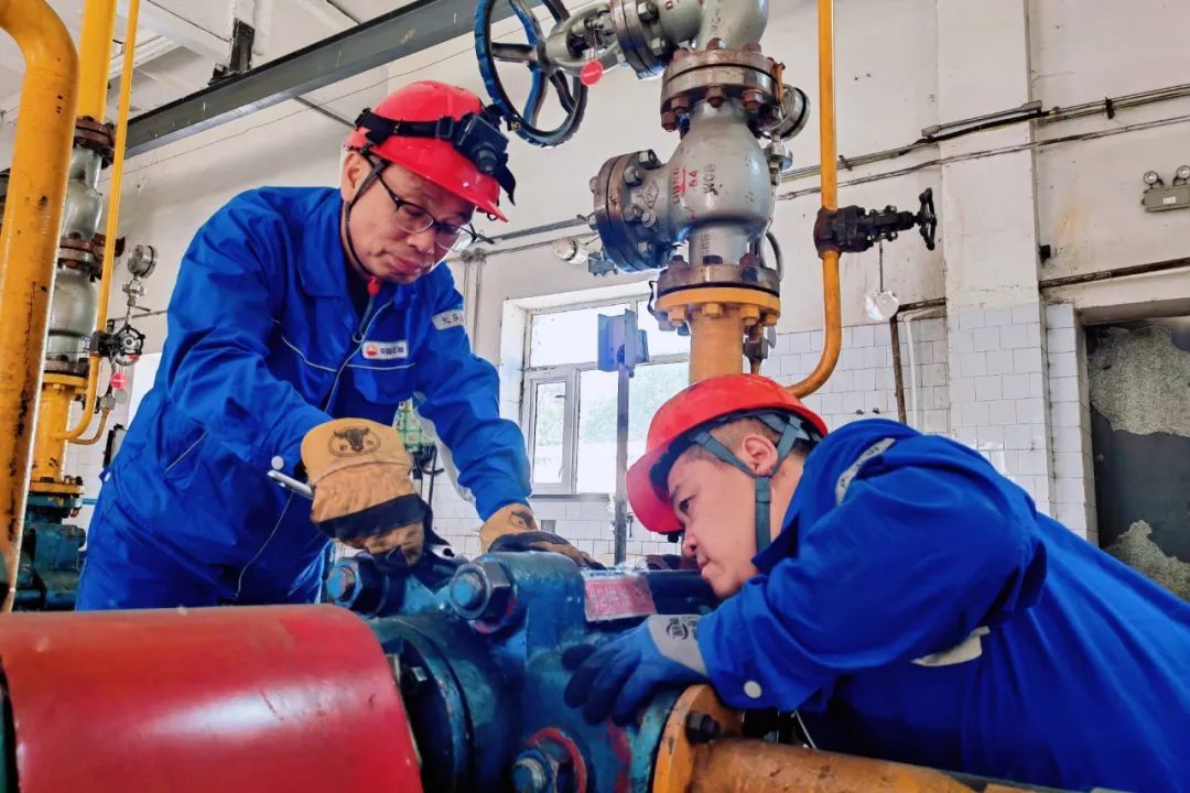 为保障生产装置稳定运行,天然气分公司生产维修大队维修工曹磊对压缩机进行故障检修,轰鸣的机器声+室内35℃的高温,让他瞬间汗如雨下,但他丝毫不敢怠慢。他说:“压缩机是生产装置的‘心脏’,我要用技术与坚守,守护能源气脉。”